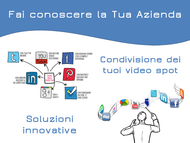 Fai conoscere la Tua Azienda sul Web in modo virale ed innovativo con brevi Video Spot e Slideshow che raccontano la Tua Attività e promuovo speciali iniziative periodiche